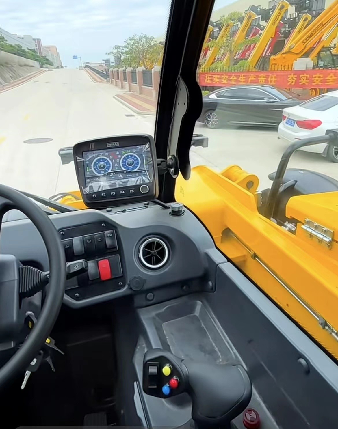 cabine fermée avec AC, caméra de secours et affichage LCD, siège entièrement suspendu